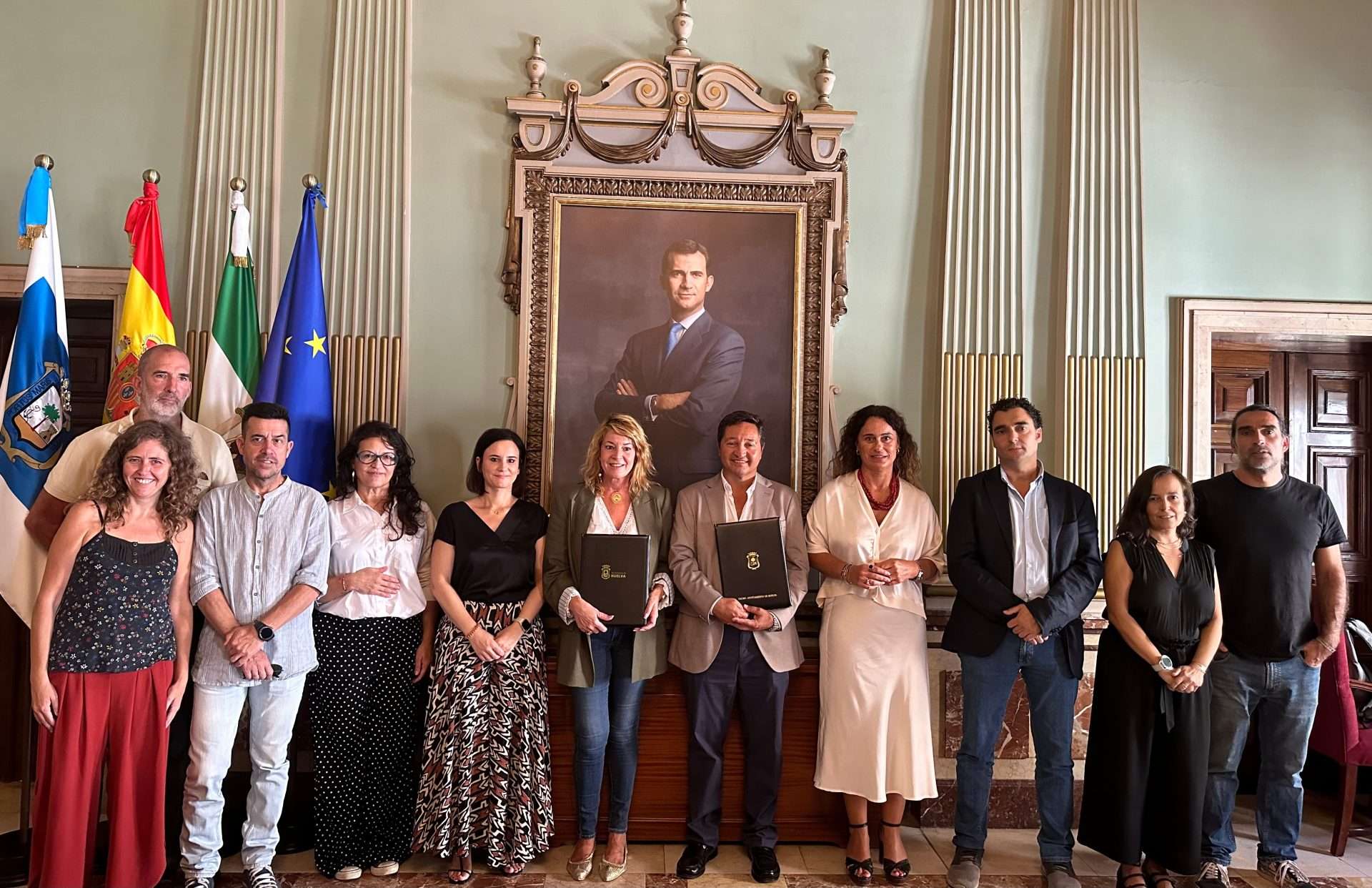 La alcaldesa de Huelva, Pilar Miranda, acompañada de la teniente alcalde de Empleo, Vivienda, Desarrollo Económico y Fondos Europeos, Adela de Mora, ha firmado esta semana un convenio con todas las entidades representativas de la Economía Social y Solidaria de la ciudad. De esta forma, como ha dicho la primera edil “por primera vez, el Ayuntamiento de Huelva se compromete, de manera firme y oficial, uniendo en un mismo acuerdo a todas estas entidades para el fomento y la promoción de modelos que supongan un desarrollo económico circular, solidario y sostenible por su capacidad para crear empleo estable y de calidad”.