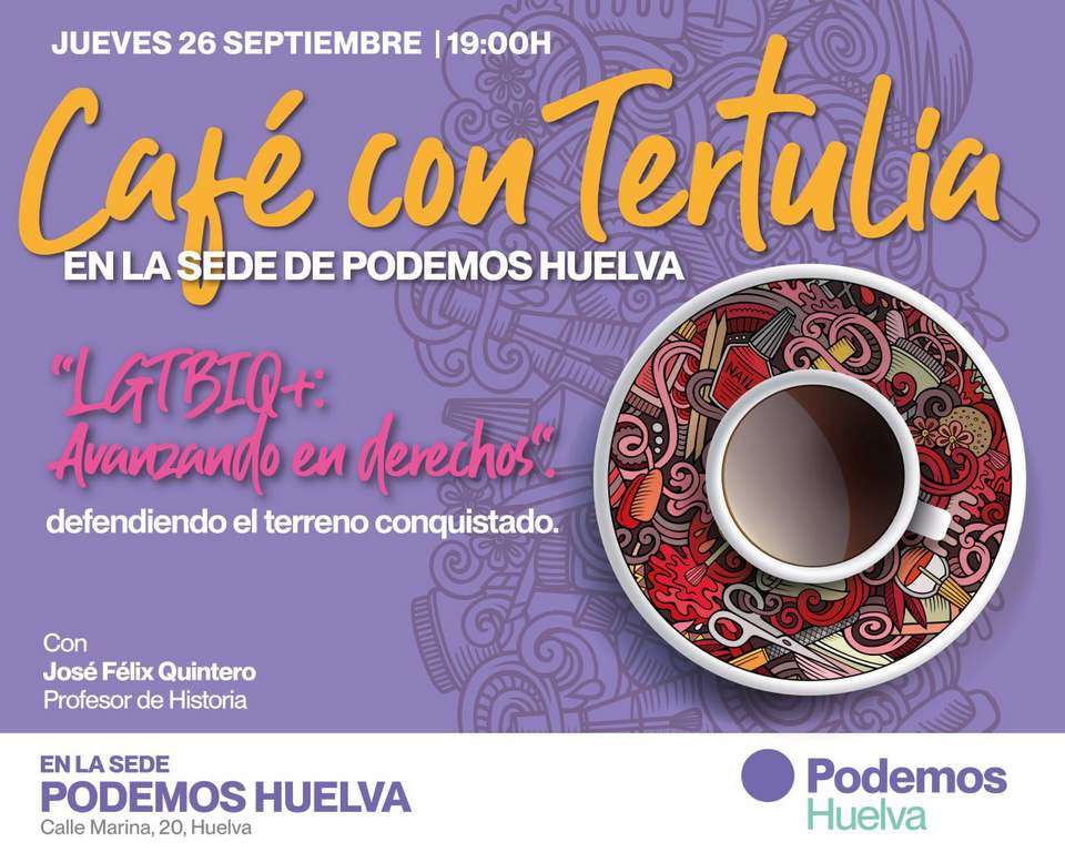 El pasado jueves 26 de septiembre se celebró una nueva edición de los «Cafés con tertulia en la sede Podemos», en la que pudimos contar con la presencia del profesor José Félix Quintero, disertando sobre el rema: «LGTBIQ+: avanzando en derechos y defendiendo lo conquistado». Su intervención comenzó con esta sencilla afirmación: “Soy gay”.