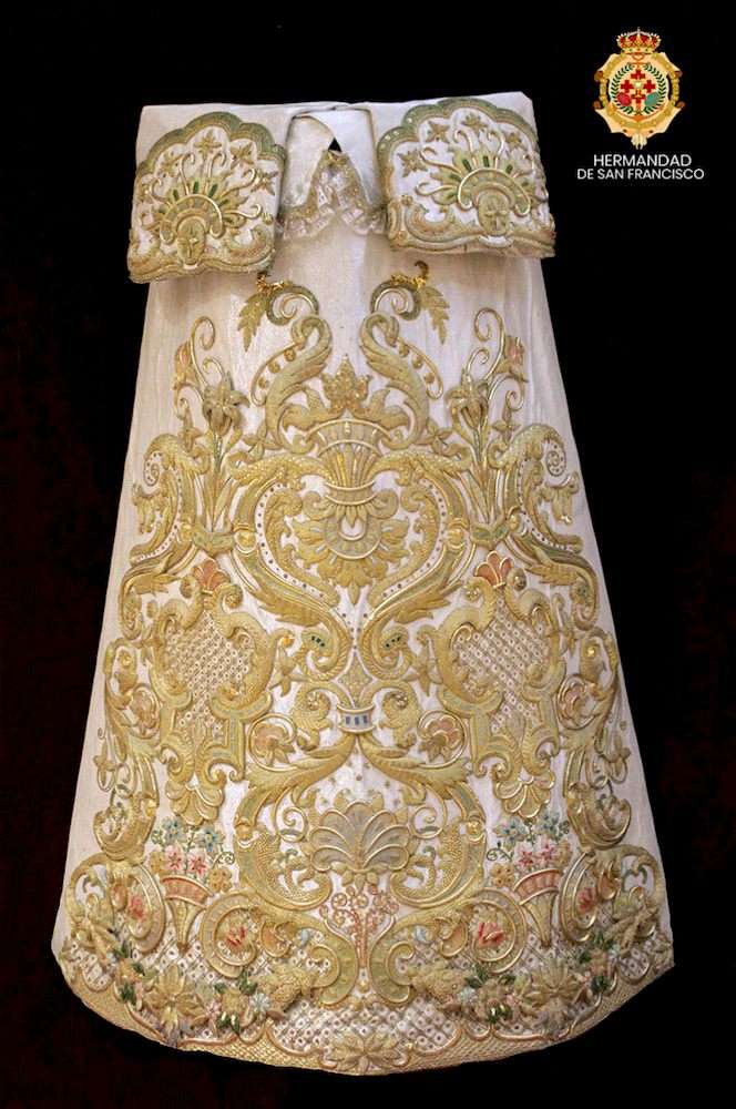 La «Saya de Coronación» cuenta con un diseño de Enrique Bendala y realizada por el Taller de Bordados de la Hermandad, siendo una obra bordada en hilo de oro y sedas de colores sobre tisú de plata. Su estreno tuvo lugar el 3 de Junio del 2000, coincidiendo con la Coronación Canónica de la Reina y Madre de San Francisco.