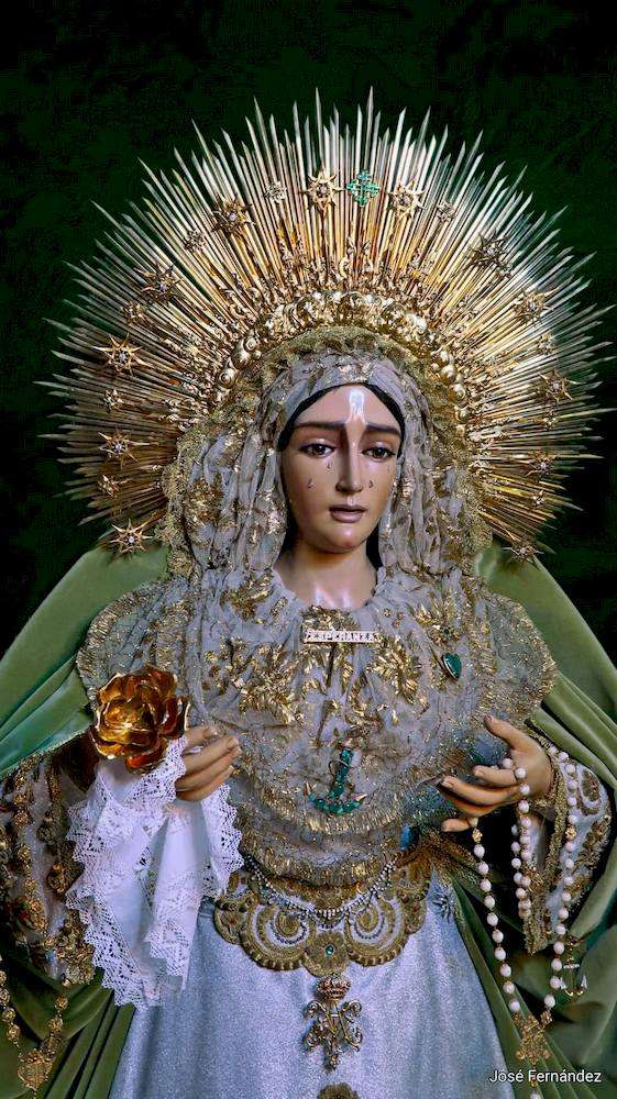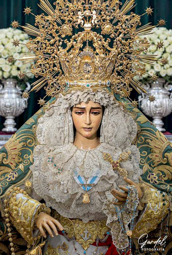 Por su parte, la «Ráfaga», es una obra realizada en plata de ley sobredorada por el Taller de Orfebrería Ramos, siguiendo el diseño de Enrique Bendala. Su estreno tuvo lugar en el año 2000, coincidiendo con el traslado de la Santísima Virgen a la S.I. Catedral de la Merced, para la celebración de los cultos preparatorios de su Coronación Canónica.