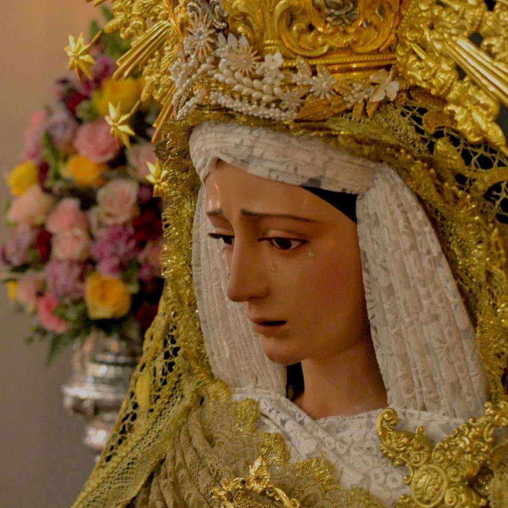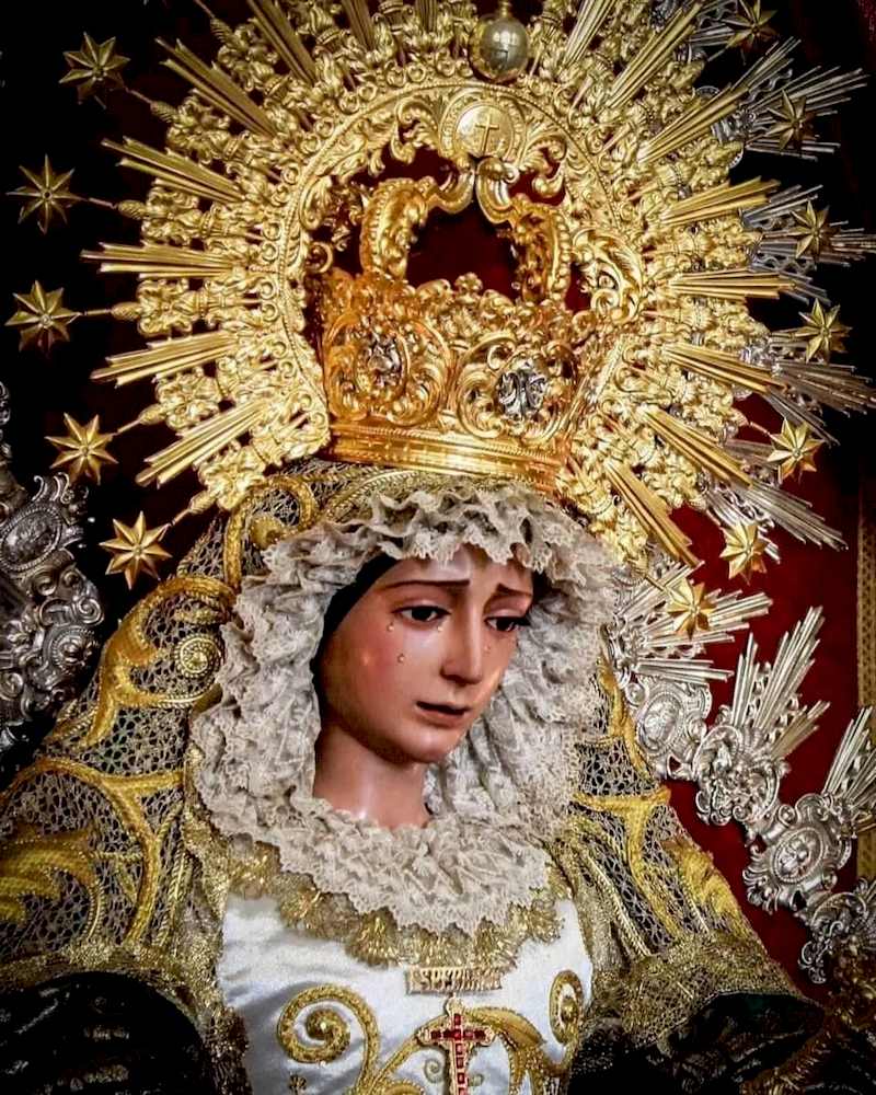 Fue restaurada por el imaginero ayamontino Antonio León Ortega en 1975 y es una imagen que muestra una tez morena con ojos oscuros y porta seis lágrimas, tres por cada mejilla. Las manos quedan abiertas con los dedos arqueados, con el dedo meñique más estirado que los demás.