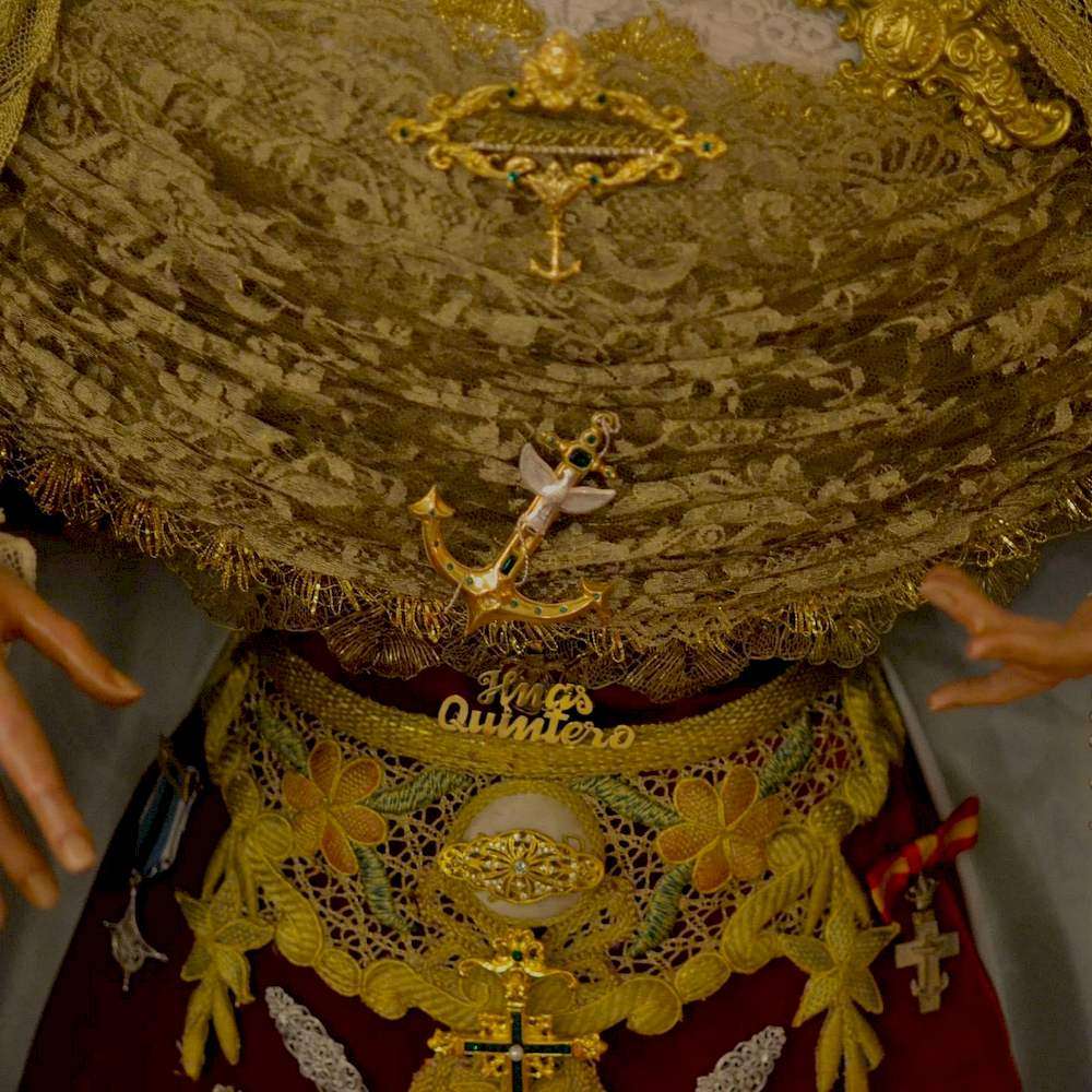La obra fue realizada por Manuel Camacho Gómez en el año 2006, estando bordada en oro y finos hilos de seda sobre terciopelo rojo. Cuenta con un diseño de corte simétrico, compuesto por pequeñas flores y vegetación, enlazadas entre ellas que remata en una cenefa. En el centro, aparece una jarra con flores y un ancla.