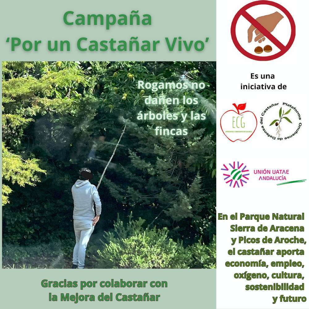 Una de las más consolidadas es la campaña ‘Por un Castañar Vivo’, que impulsan la Asociación de Empresarios, Comerciantes y Autónomos de Galaroza junto a la Plataforma Onubense de Defensa del Castañar, y que lleva desarrollándose desde hace varios años.