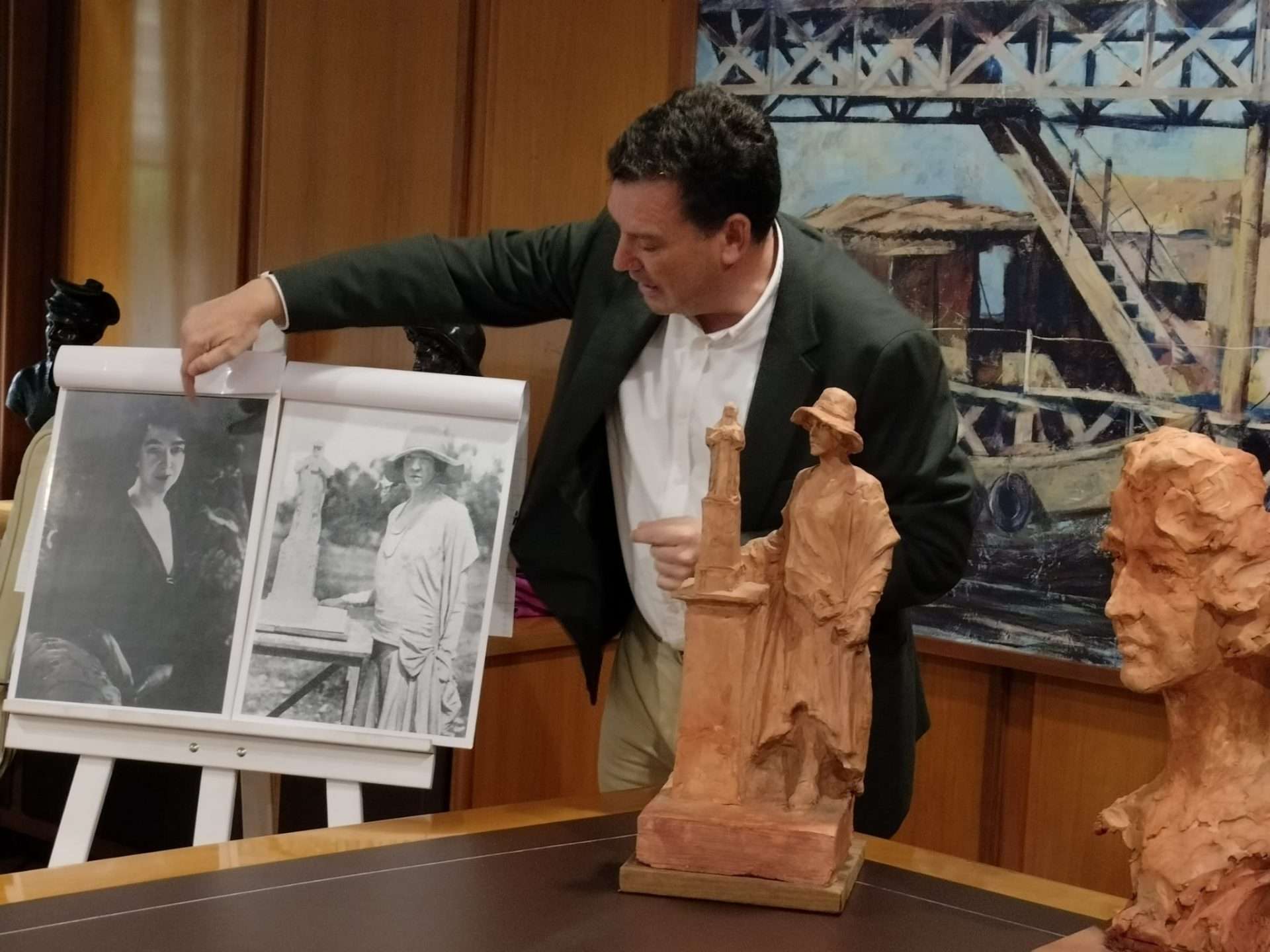 Por su parte, Sugrañes ha destacado que “se trata de una escultura que viene a unir todos los reconocimientos que en Huelva ha tenido la figura de Getrude Vanderbilt Whitney, autora del Monumento a Colón, ya que su presencia y su obra en nuestra ciudad constituyó todo un revulsivo femenino en la Huelva de 1929 que la conoció”. El periodista ha puesto de manifiesto durante la reunión que “esa cercanía llevó al Ayuntamiento a reconocerla como hija adoptiva o dedicarle una avenida, lo que evidencia que siempre Huelva le ha tenido en gran estima y ahora se pretende que esté permanentemente con los onubenses en la Punta del Sebo en una mayor cercanía hacia la escultora”.