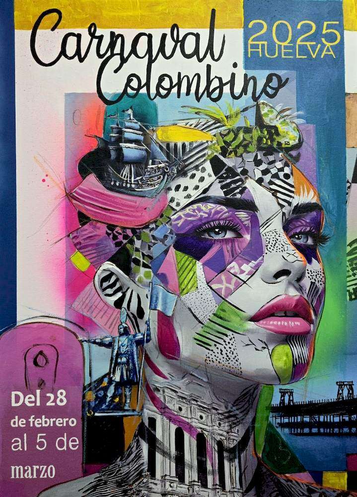En esta tarde, 13 de noviembre, se ha elegido el cartel anunciador del Carnaval Colombino 2025. Ganadora: «Vanguardista, Creativa y Carnavalera» de Chema Riquelme… Enhorabuena Maestro!!