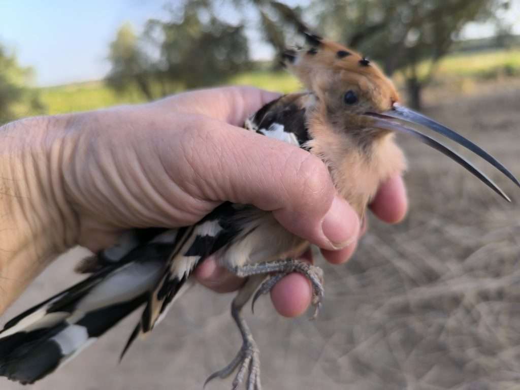 Como muestra de ello, “Mujeres por Doñana” reseña el caso de una abubilla común -upupa epops- a la que encontraron herida y desnutrida, con una herida cortante en el pico durante una patrulla en uno de los arroyos afectados.