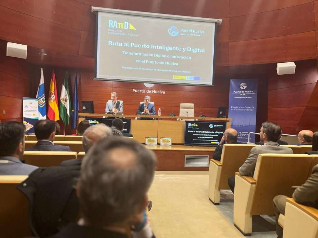 Málaga, Carlos Rubio, entre otras autoridades y personalidades en el puerto de Huelva, con ejemplos prácticos que ilustraron cómo la digitalización puede optimizar procesos y mejorar la experiencia de los usuarios.