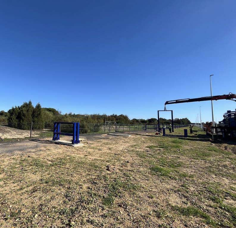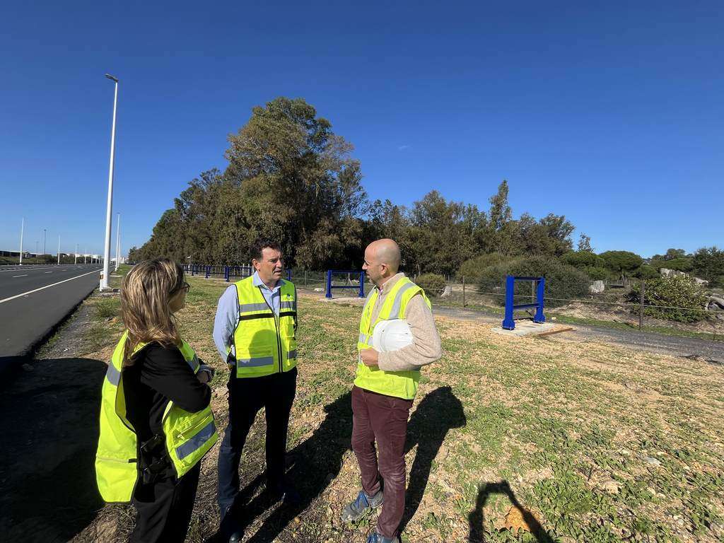 El presidente del Puerto de Huelva, Alberto Santana, ha realizado una visita a las obras, acompañado por la jefa del Departamento de Proyectos y Obras, Guadalupe Díaz, donde han podido comprobar que el proceso de colocación de infraestructuras metálicas, sobre las que se asentarán las tuberías, está muy avanzado, puesto que ya se están disponiendo en las inmediaciones del Muelle Sur.