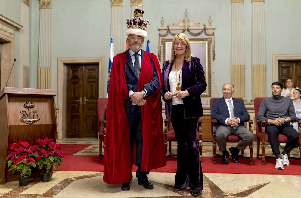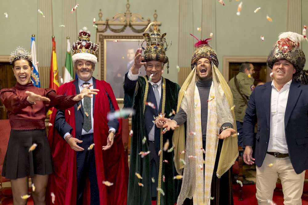 El salón de plenos del Ayuntamiento de Huelva ha sido el escenario elegido para vivir “uno de los días más bonitos e ilusionantes del año”. Así lo ha trasladado la alcaldesa de Huelva, Pilar Miranda, quien, acompañada por el concejal de Cultura y Patrimonio Arqueológico, Nacho Molina, ha coronado a SS MM los Reyes Magos de Oriente, y ha presentado a la Estrella de la Ilusión y el Heraldo Real, “a los que ha pedido que, con su magia, llenen de luz todos los hogares de Huelva”.