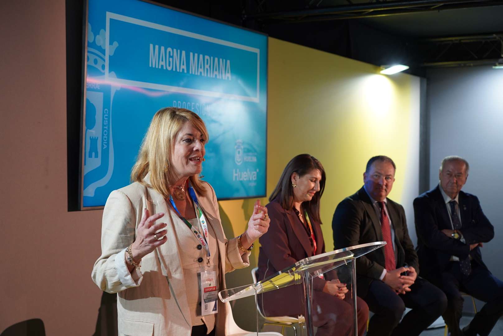La alcaldesa de Huelva, Pilar Miranda, ha presidido esta mañana en Fitur, la Feria Internacional del Turismo que se celebra estos días en Madrid, el acto de presentación de la Magna Mariana que tendrá lugar el próximo mes de septiembre convirtiéndose en “un día histórico, con récord de visitas en la capital onubense”.
