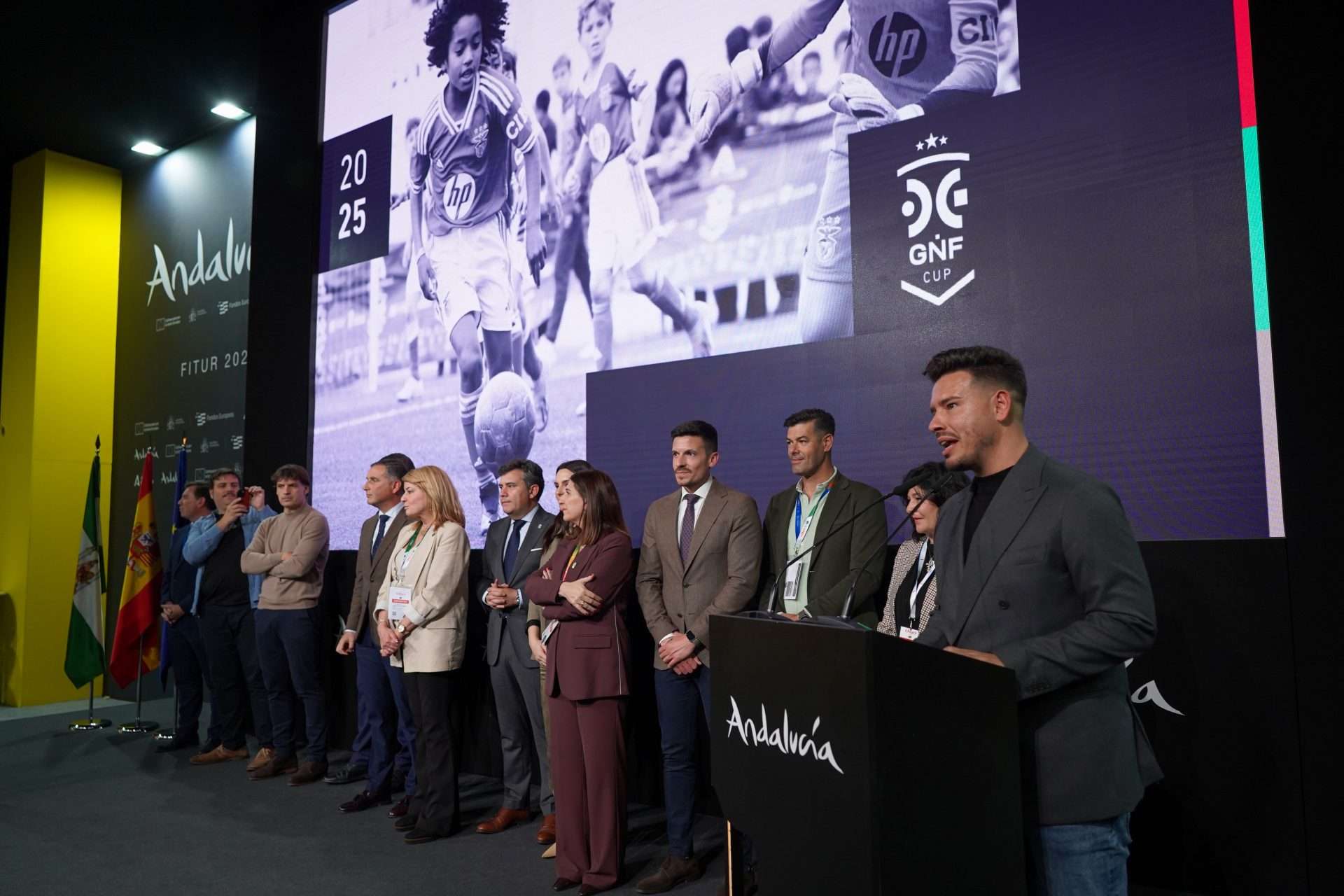 La Gañafote Cup ha presentado su décima edición en la Sala Andalucía, la sala denominada del consejero, en el Pabellón número 5 de la Feria Internacional de Turismo, la mayor feria del mundo del sector. Y lo ha hecho como un auténtico torbellino, revolucionando el pabellón andaluz con el padrino de esta edición tan especial, el ex futbolista y comentarista televisivo, Fernando Morientes.