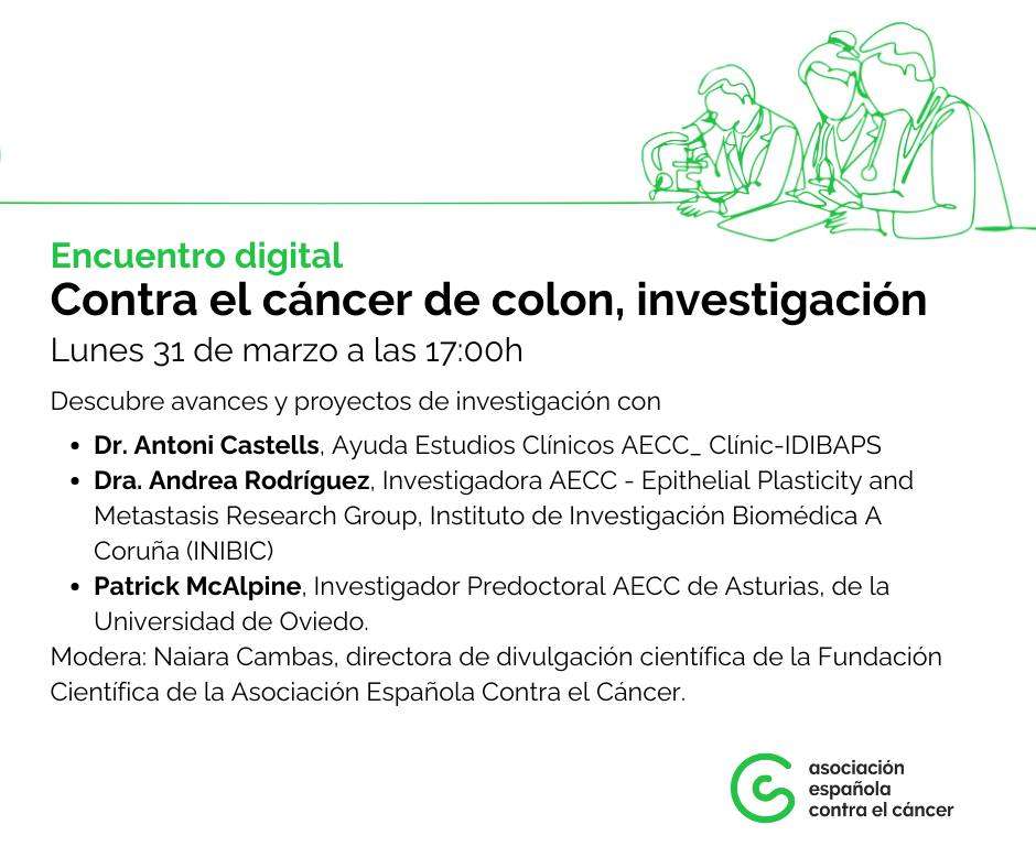 Ante esta realidad, y con motivo Día Mundial Contra el Cáncer de Colon que se celebra cada 31 de marzo, la Asociación Española contra el Cáncer hace un llamamiento a la población en riesgo con el objetivo de que participen en los programas de cribado de cáncer de colon, una herramienta clave para la detección precoz y la reducción de la mortalidad de esta enfermedad. https://www.contraelcancer.es/es/ebooks/deteccion-cancer-colon