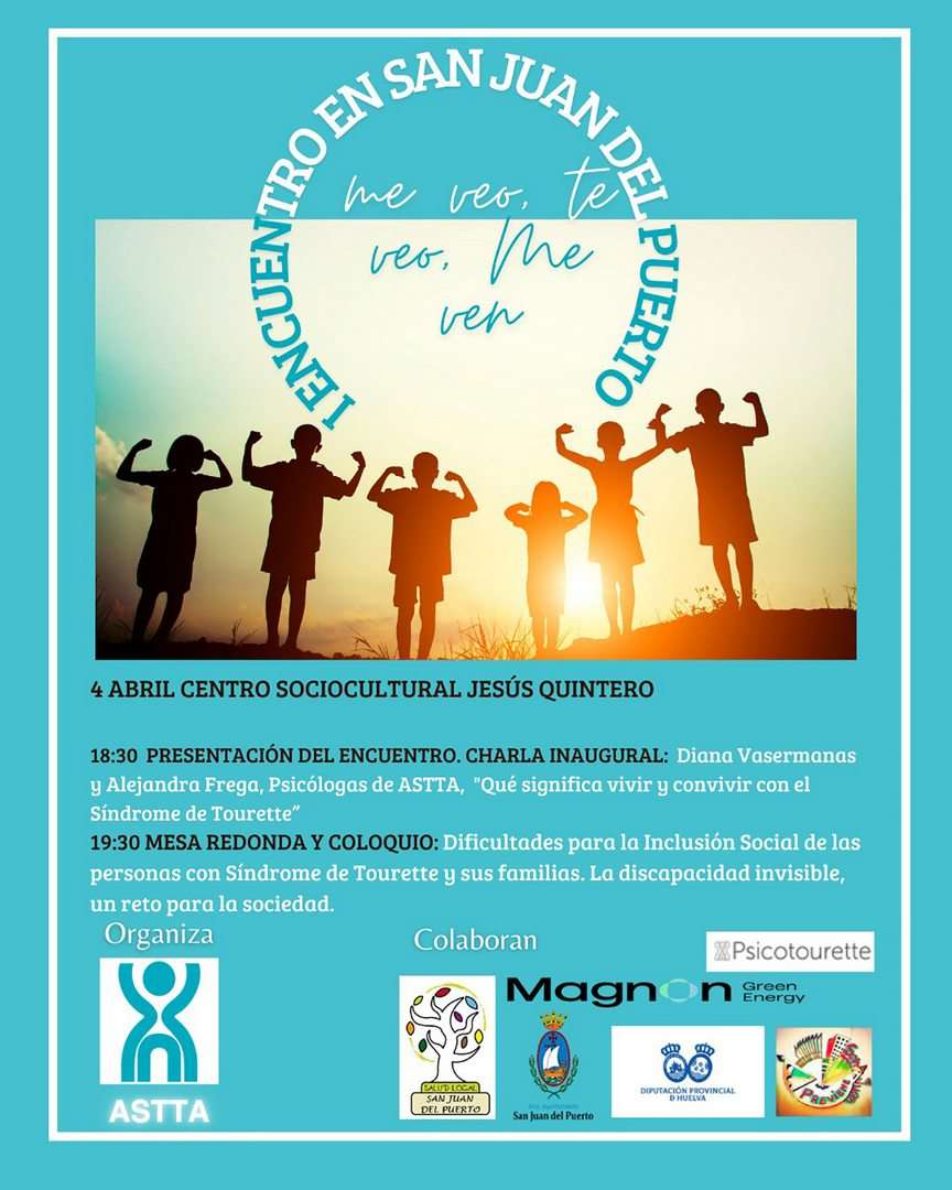 San Juan del Puerto se va a convertir este fin de semana en el epicentro de la sensibilización y el apoyo a las personas con Síndrome de Tourette (ST) y sus familias, con la celebración del I Encuentro de la Asociación Andaluza de Pacientes con Síndrome de Tourette y Trastornos Asociados (ASTTA). Bajo el lema “Me veo, te veo, me ven”, este evento tiene como objetivo contribuir a la prevención del riesgo de exclusión social de las personas afectadas y fomentar su integración en diferentes ámbitos de la vida cotidiana.