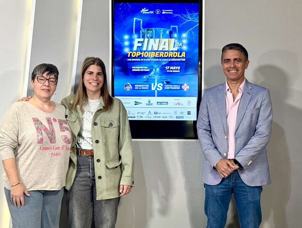 La concejala de Deportes Salud y Consumo del Ayuntamiento de Huelva, María de la O Rubio; la presidenta del Club Bádminton IES La Orden, María Eugenia Lorenzo; y Paco Ojeda, director deportivo del Club Bádminton IES La Orden han presentado esta mañana en rueda de prensa el partido de ida de la gran final de la Liga de Clubes División de Honor de Bádminton que enfrentará al Club Bádminton IES La Orden y el Club Puertas Padilla Cartagena.