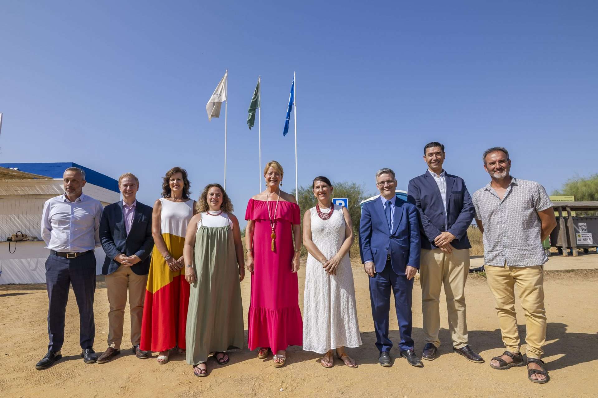 de la playa del Paraje Natural Marismas del Odiel al izar las tres banderas que certifican su calidad