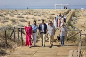 Teresa Herrera ha felicitado a la alcaldesa y al Ayuntamiento de Huelva “por mantener las condiciones que exigen las tres banderas que ya ondean en el Paraje Natural Marismas del Odiel porque requiere de mucho esfuerzo, pero sobre todo de voluntad para poner esta playa a disposición de los onubenses y generar un recurso turístico de calidad”. En este sentido, la delegada ha asegurado que “tenemos muy buenas previsiones turísticas para este verano, porque hemos hecho los deberes” por lo que ha exigido al Gobierno de España “que haga lo mismo, que deje de lastrar las posibilidades de Huelva con la pésima gestión de las infraestructuras ferroviarias y responda de una vez a las exigencias y necesidades de esta provincia, poniendo fecha a la llegada del AVE como le viene reclamando la sociedad onubense con Pilar Miranda al frente”.