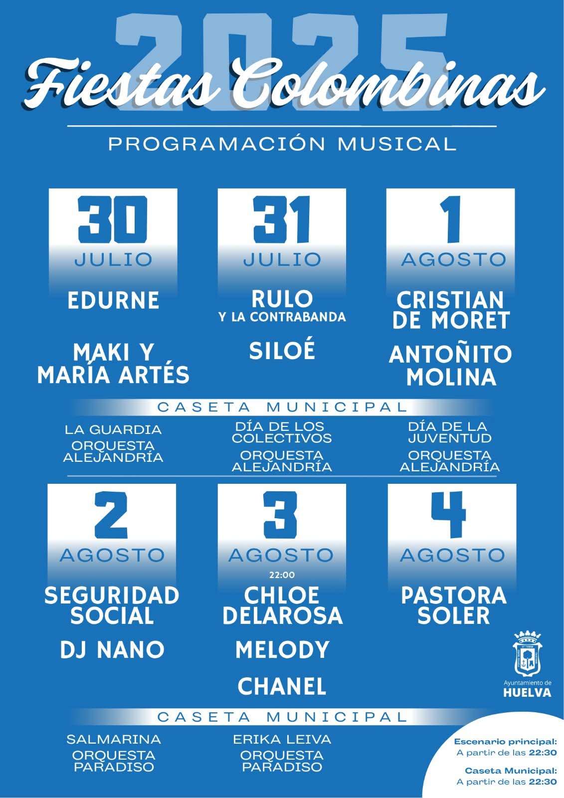 Con estas nuevas incorporaciones, el cartel musical de las Fiestas Colombinas 2025 queda totalmente cerrado. Una programación diversa que apuestas por la combinación de artistas consagrados, emergentes y géneros de todos los gustos, en seis noches de conciertos gratuitos que volverán a llenar de música el recinto colombino.
