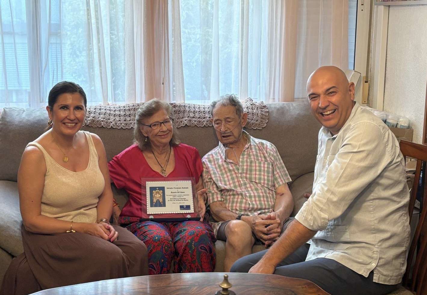 Por ello, la Junta de Gobierno y representantes de la empresa colaboradora se desplazaron hasta la casa familiar de Salvador y Chari para llevar a cabo este sentido reconocimiento en un ambiente cercano y familiar.