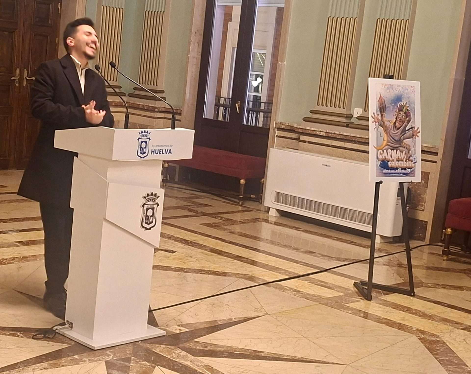 La alcaldesa de Huelva, Pilar Miranda, ha querido felicitar al ganador “quien ha presentado un cartel que nos arranca una sonrisa y que representa a la perfección el espíritu de nuestro carnaval: divertido, cercano y profundamente onubense”. Tal y como ha explicado la alcaldesa, la obra representa el emblemático monumento a Cristóbal Colón, en la Punta del Sebo, con antifaz, acompañado de un choco que le ofrece un pito de caña, con el Gran Teatro y el Muelle del Tinto al fondo, “una imagen fresca, simpática y cargada de simbolismo, que refleja el carácter risueño, creativo y festivo del Carnaval Colombino”. Dicho cartel que ha sido elegido por votación popular entre seis magníficas obras previamente seleccionadas por un jurado profesional.