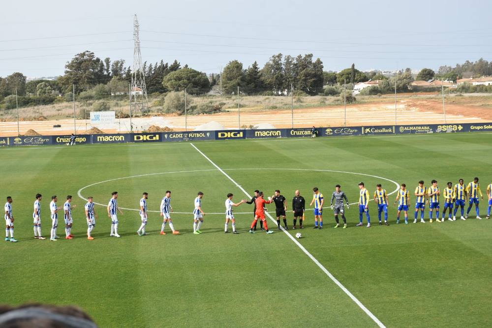 Incidencias: Partido correspondiente a la jornada 22 en la Ciudad Deportiva Bahía de Cádiz casi sin presencia de aficionados recreativistas en la grada.