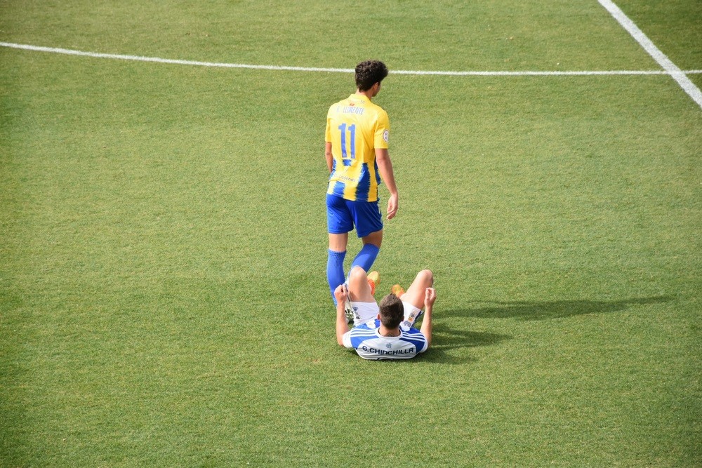 Nacho y Chinchilla eran los que más buscaban el gol, rozando en varias ocasiones. Y pudo llegar en una falta botada por Salinas muy cerquita del pico del área que se marchaba muy cerquita del palo largo, esta misma falta había sido reclamada por los jugadores del Recre dentro del área siendo la segunda jugada dudosa del partido.