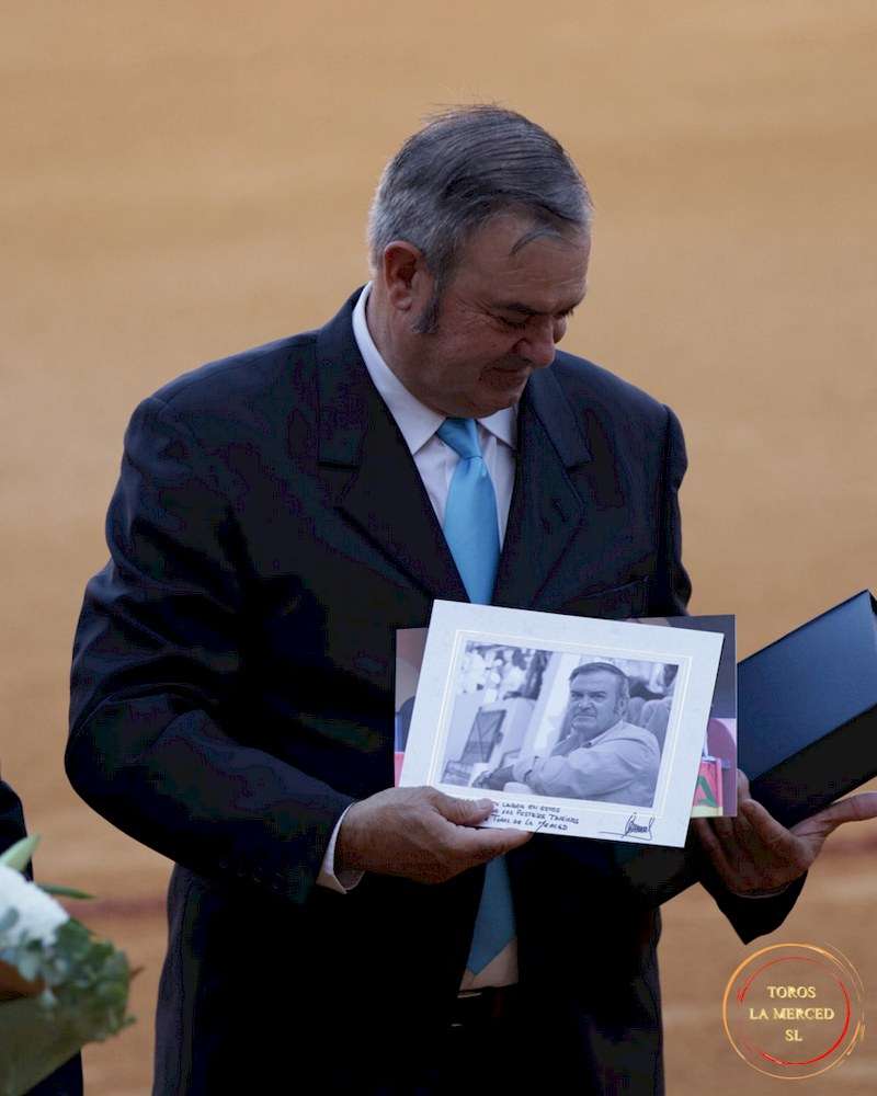 Por una parte, la Delegación del Gobierno de la Junta de Andalucía en Huelva le hizo entrega de una carabela de plata al empresario del Coso de La Merced, D. José Luis Pereda López por su labor al frente del recinto taurino choquero y por el aniversario de los XL Años de la Reinauguración.