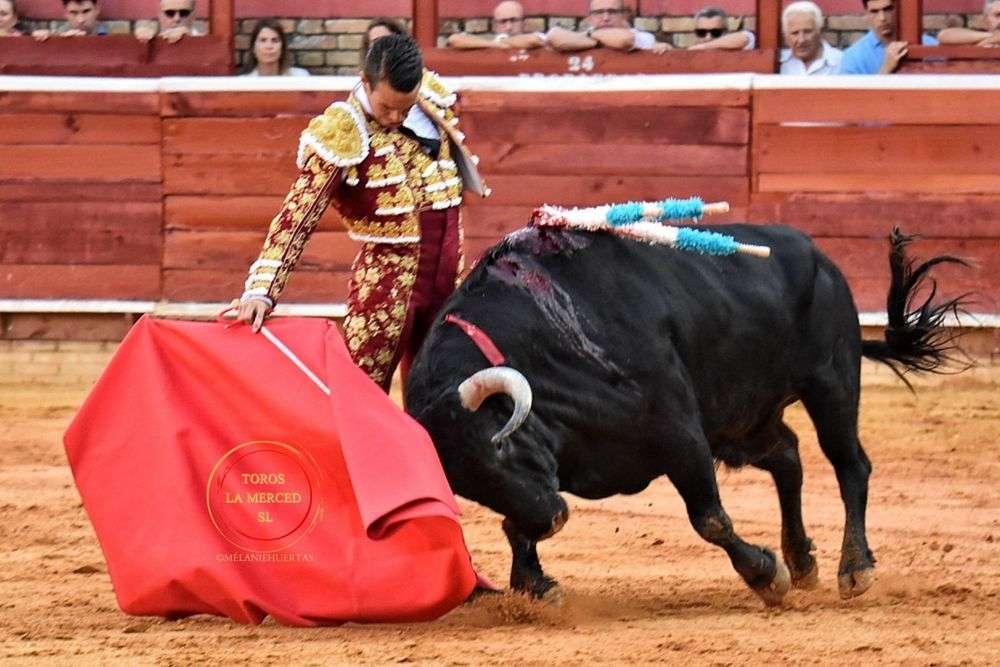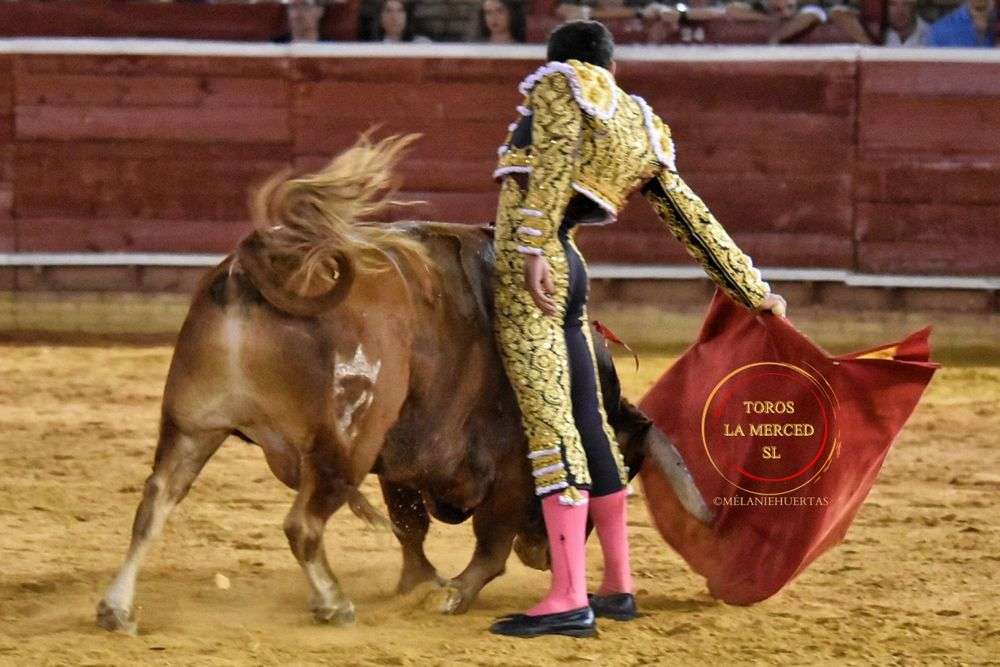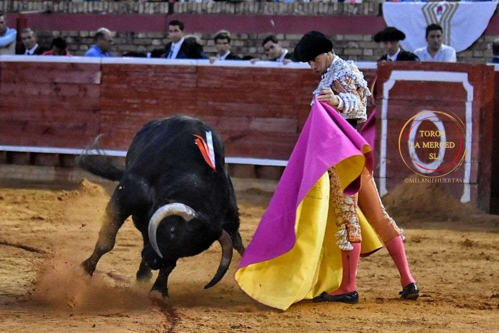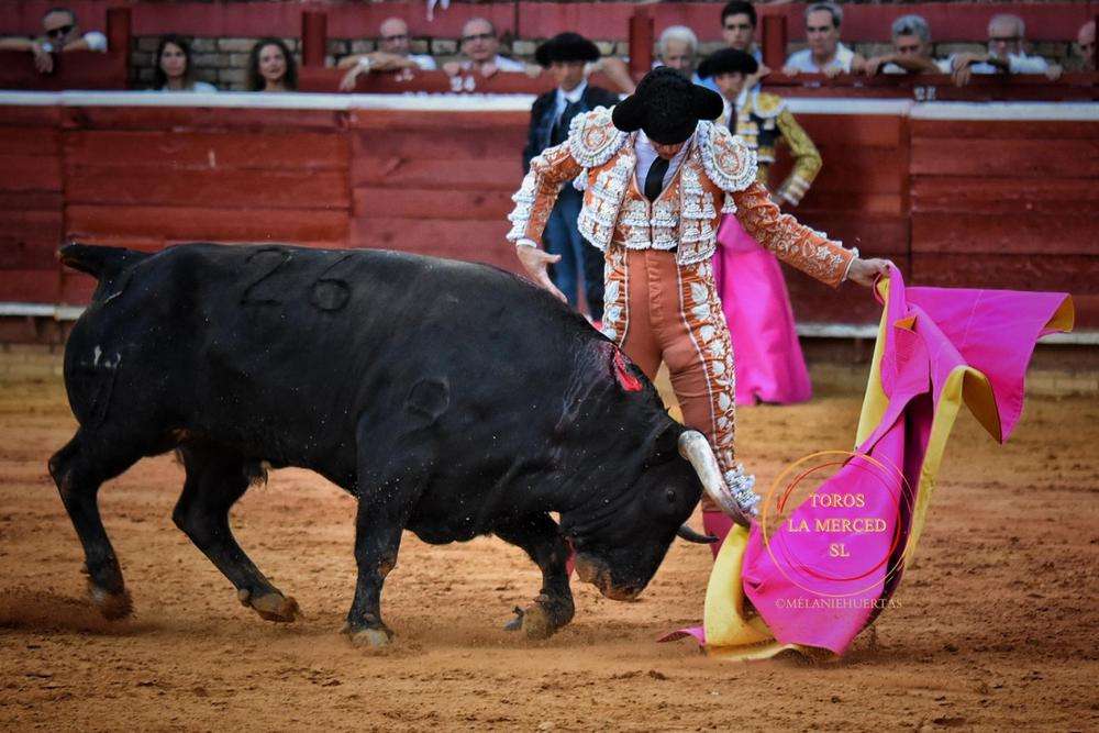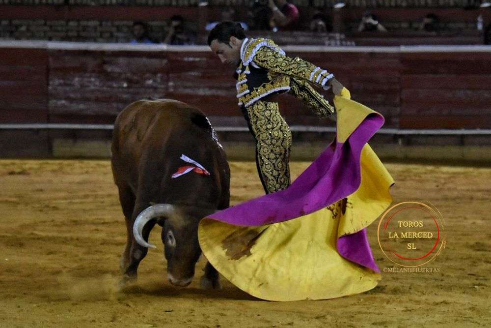 David de Miranda en su segunda tarde de Colombinas se gustó con el capote con el tercero de la tarde, remangando un ramillete de verónicas con una bonita media. El animal en el caballo ya acusó su falta de fuerzas, pero también su nobleza. El quite fue por ajustadas saltilleras, que calentaron los tendidos. Muy buen par dejó Fernando Pereira. David se lo brindó a su banderillero Cándido Ruiz, que cayó gravemente herido en Azpeitia. Empezó la faena de muleta por estatuarios, lo llevó siempre muy templado por el derecho, aunque también por el izquierdo dibujó naturales largos sobre todo en una tanda. Culminó la faena con un enorme arrimón final y con ajustadísimas benardinas. La estocada fue efectiva y cortó dos orejas.