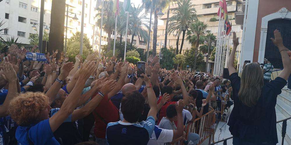 Aficionados y ciudadanos han acompañado a la plantilla, el cuerpo técnico y el consejo de administración del equipo albiazul que han sido recibidos por el alcalde de Huelva en funciones, Gabriel Cruz. Huelva reafirmaba así su apoyo al Decano, concentrándose los recreativistas que lo han estado acompañando durante esta temporada en La Casa Colón, el lugar que vio nacer al club hace 134 años.