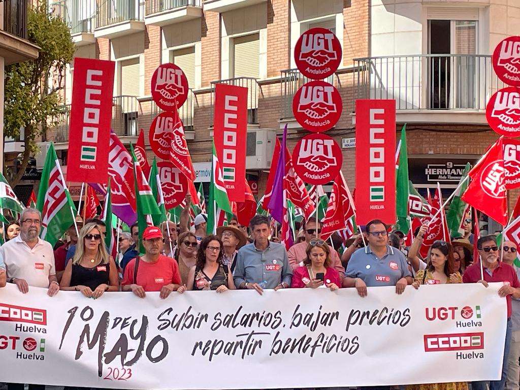 Bajo el lema “Subir salarios, Bajar Precios. Repartir Beneficios” los onubenses han salido a la calle este 1º de mayo