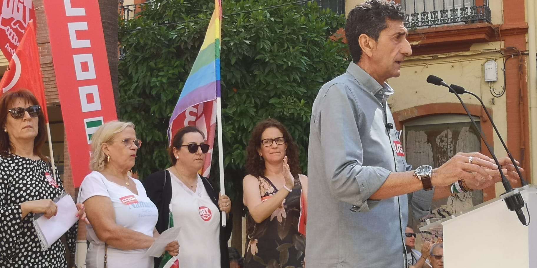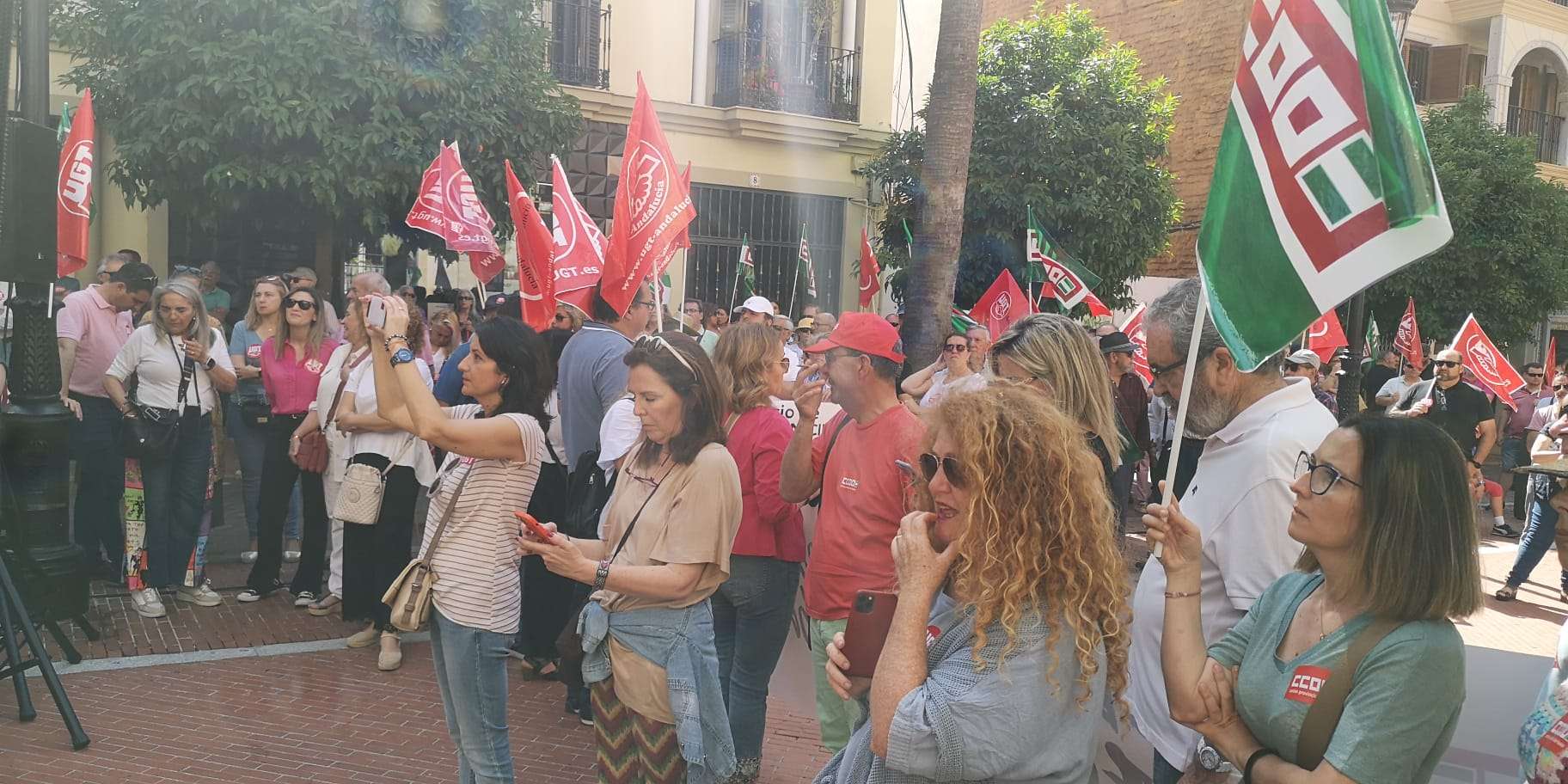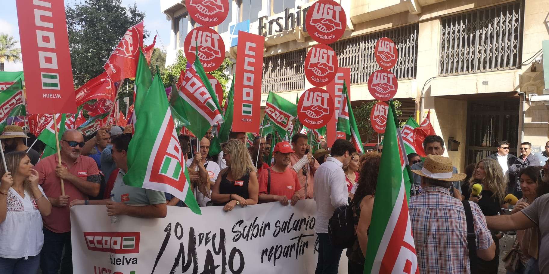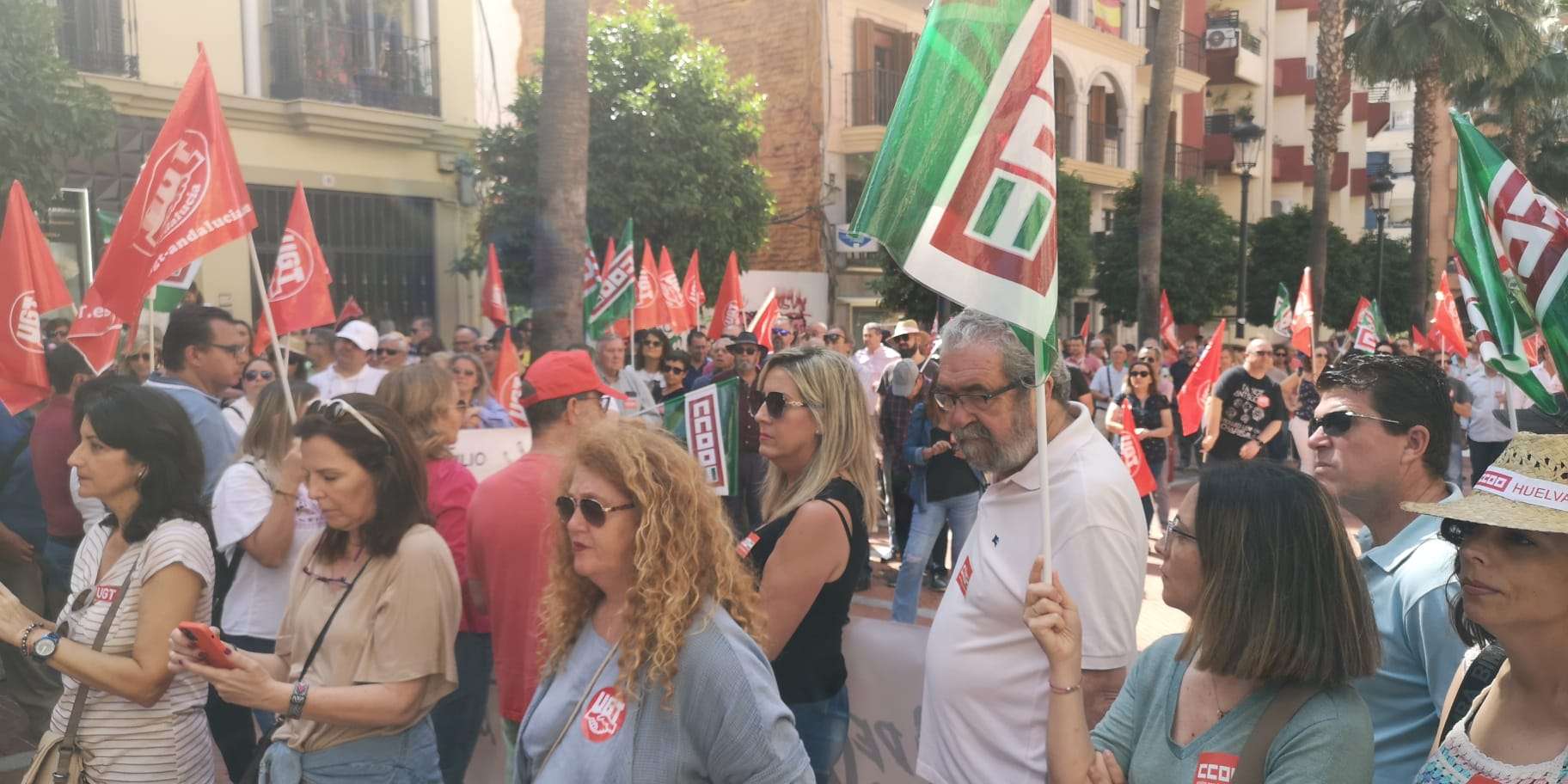 Los secretarios generales de CCOO y UGT de Huelva, Julia Perea y Sebastián Donaire respectivamente han valorado de “éxito” la manifestación del 1º de mayo. Ambos dirigentes han afirmado que “Huelva ha participado de forma masiva para reivindicar SUBIR SALARIOS, BAJAR PRECIOS, REPARTIR BENEFICIOS y que las personas deben ser el centro de las políticas”.