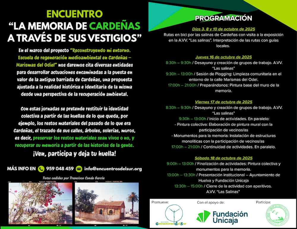 Con la Entidad Encuentros del Sur y la Fundación Unicaja, trasladamos un proyecto que se desarrolla en la Barriada de Cardeñas de Huelva capital. Hemos hablado con vecin@s del barrio, que se han criado y vivido en la zona, antigua y nueva. Ell@s nos han trasladado sus vivencias con la remodelación que ha sufrido esa zona. Así como, el trabajo de varias entidades y voluntari@s para cambiar su imagen y poner en valor esa barriada.