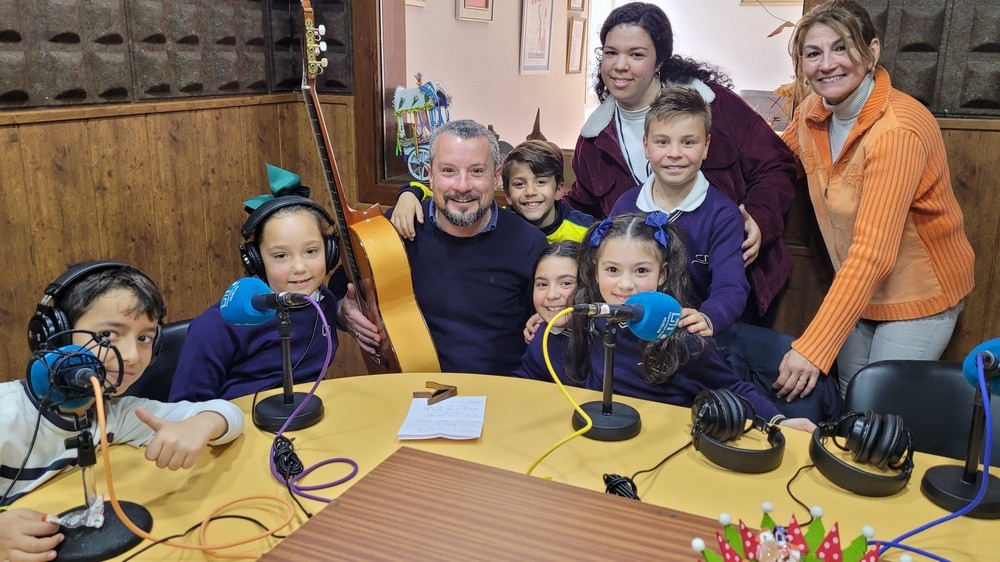 Hoy tuvimos la visita del Colegio Diocesano «Sagrado Corazón de Jesús» de Huelva. Alumnos y alumnas de 3°de Primaria y Juan González Caballero, actualmente Profesor de 1°de Primaria, pero con una estrecha relación con los niños y niñas que han pasado por sus clases. Nos comenraron su experiencia en el famoso concurso de Tele 5 «Got Talent» en el que llegaron a semifinales… Pudimos hablar con Juan González de su peculiar metodología educativa, basada en la música, capaz de utilizarse en todas las asignaturas y convertirse en una aliada para acudir a clase, además de un poderoso recurso para ganar atencion, aprender con ilusión y hacerles felices. Conocimos su próximo proyecto de viajar a traves de Eramus + para dar a conocer este método de enseñanza a otros países.