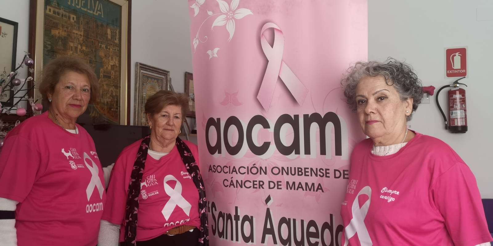 En el mes de la sensibilización y concienciación sobre el cáncer de mama estuvimos en la Asociación Onubense de Cancer de Mama, AOCAM, «Santa Águeda». Con M. José Amarillo, Cinta Caparrós y Dolores Caparrós, Presidenta y dos de sus voluntarias respectivamente, hablamos sobre las actividades realizadas estos días y las necesidades de sus soci@s y familiares que van más allá de la salud y minimizan las consecuencias de la enfermedad.