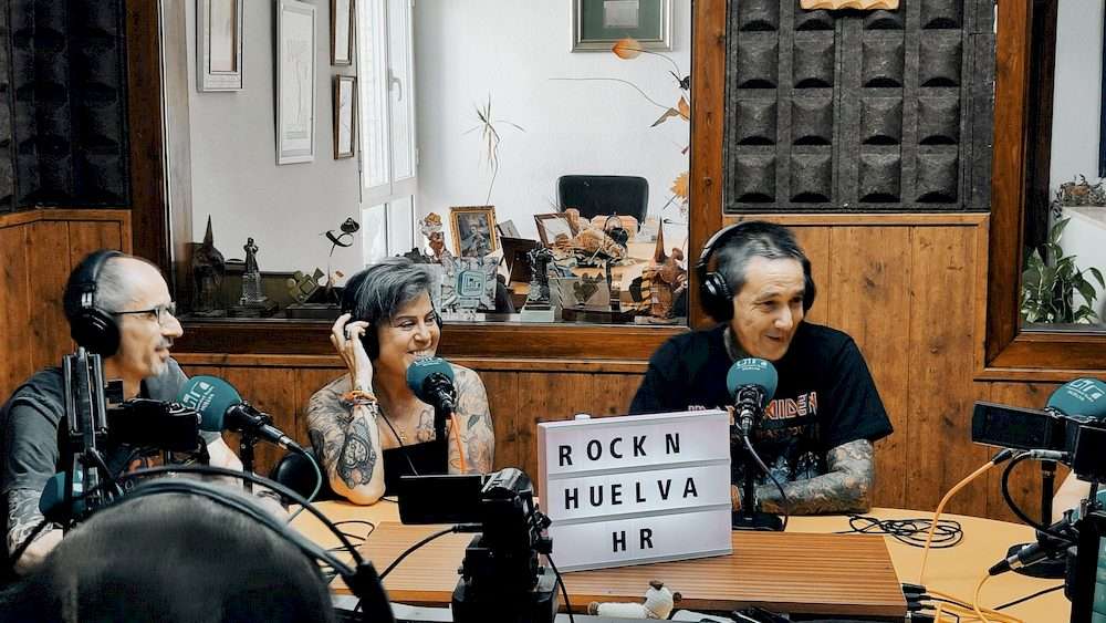 Comenzamos a las 7 de la tarde con los amigos de la ESCUELA TALLER ROCK DE HUELVA, Esther, Juan Alberto y Fran, que nos contaron sus más que buenas sensaciones tras el primer año de vida de la escuela y los planes inmediatos, los cuales prometen, y mucho, comenzando este mismo verano.